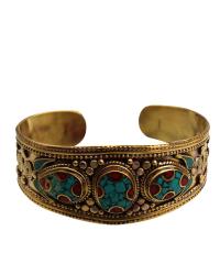 Brass Turquoise Coral inlay Tibetan Bracelet