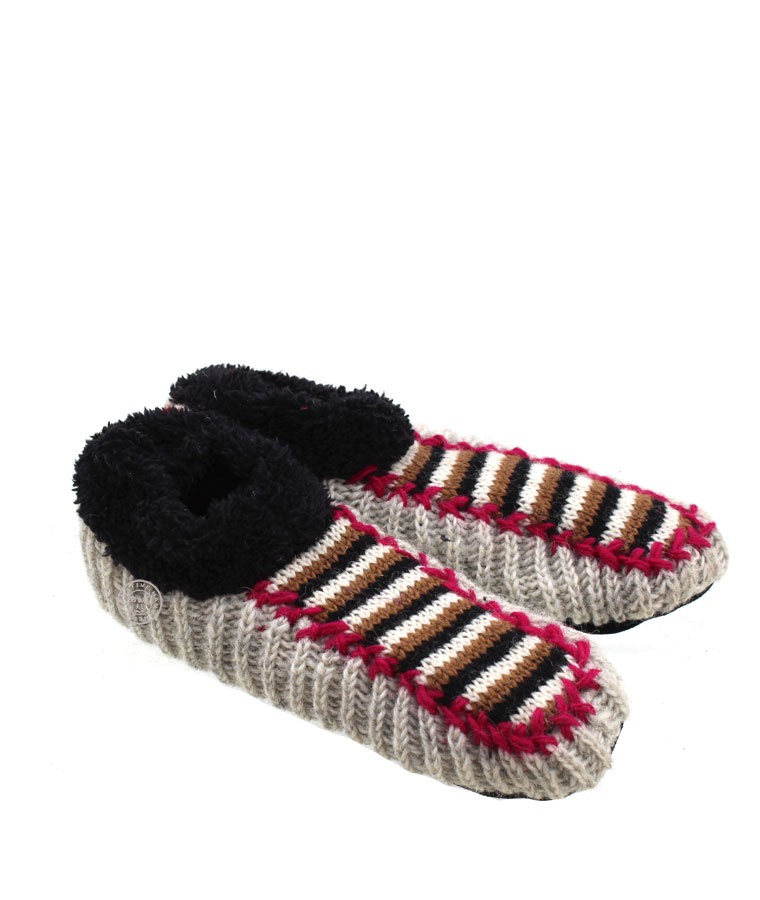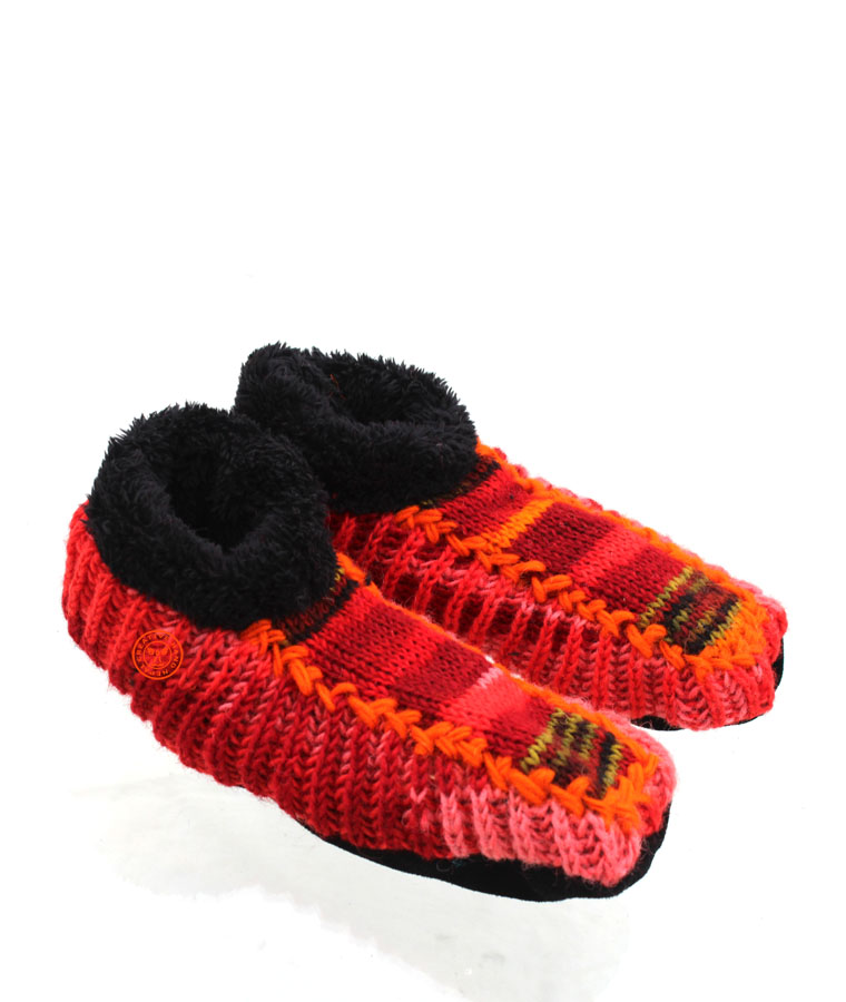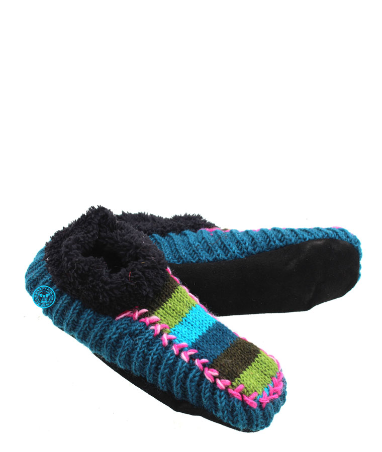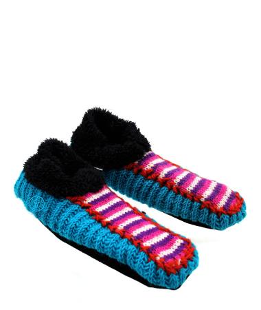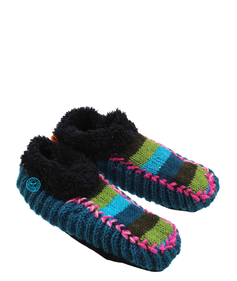 These Knit Wool Slippers  are truly deluxe. Each Slippers  is wool on the outside with a soft fleece lining on the inside. They are all hand knitted  by the Kathmandu women in Their Houses. Please Note-Available in assorted colors and pattern of knitting, Suede Leather Non-slip Slipper Soles,  Approx 26 x 8 cm, One size fits all in this wool stretchy knit .