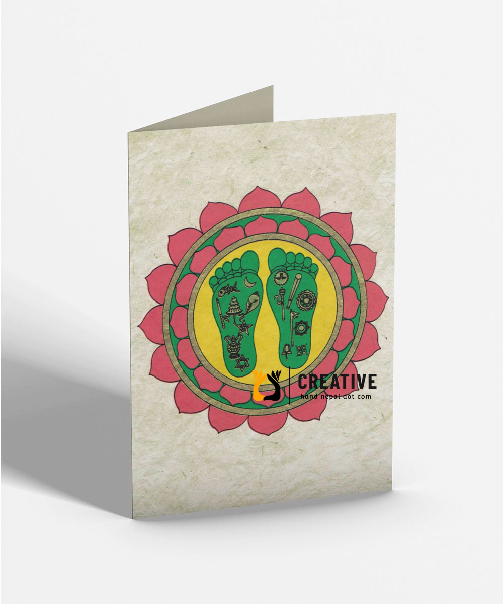 These Hand made Vishnu Padhuka greeting cards are blank inside and suitable for many occasions.