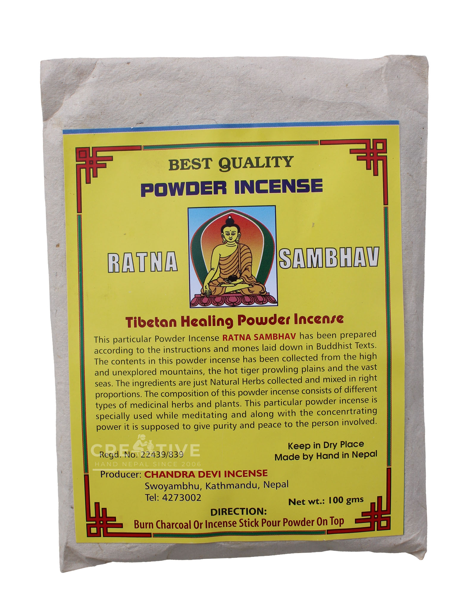 This particular powder incense Ratna Sambhav has been prepared according to the instructions laid down in Buddhist Texts. The contents of this powder incense have been collected from the high mountains of Nepal. The ingredients are natural herbs collected and mixed in right proportions. The composition of this powder incense is specially used while meditating and along with the concentrating power it is supposed to give purity to the person involved.