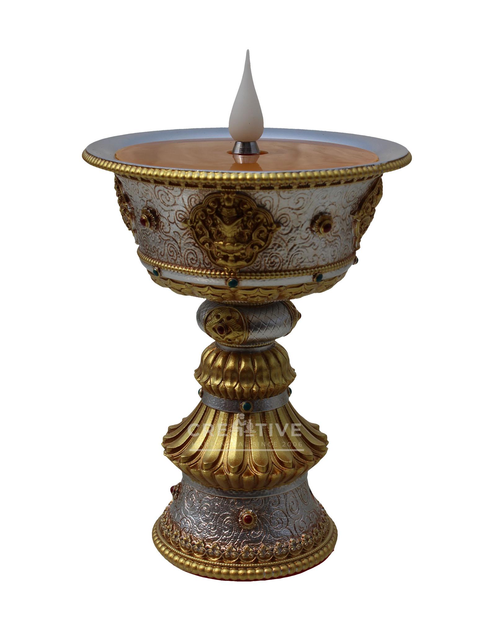 Experience the spiritual essence of a traditional butter lamp with this modern electric alternative, designed to provide a warm, steady glow symbolizing wisdom and enlightenment.This electric butter lamp is a symbol of devotion and enlightenment, offering a safe, practical, and elegant solution for spiritual lighting.