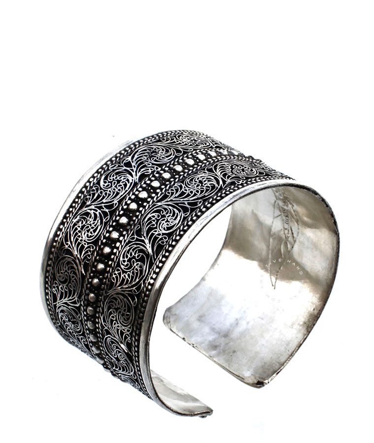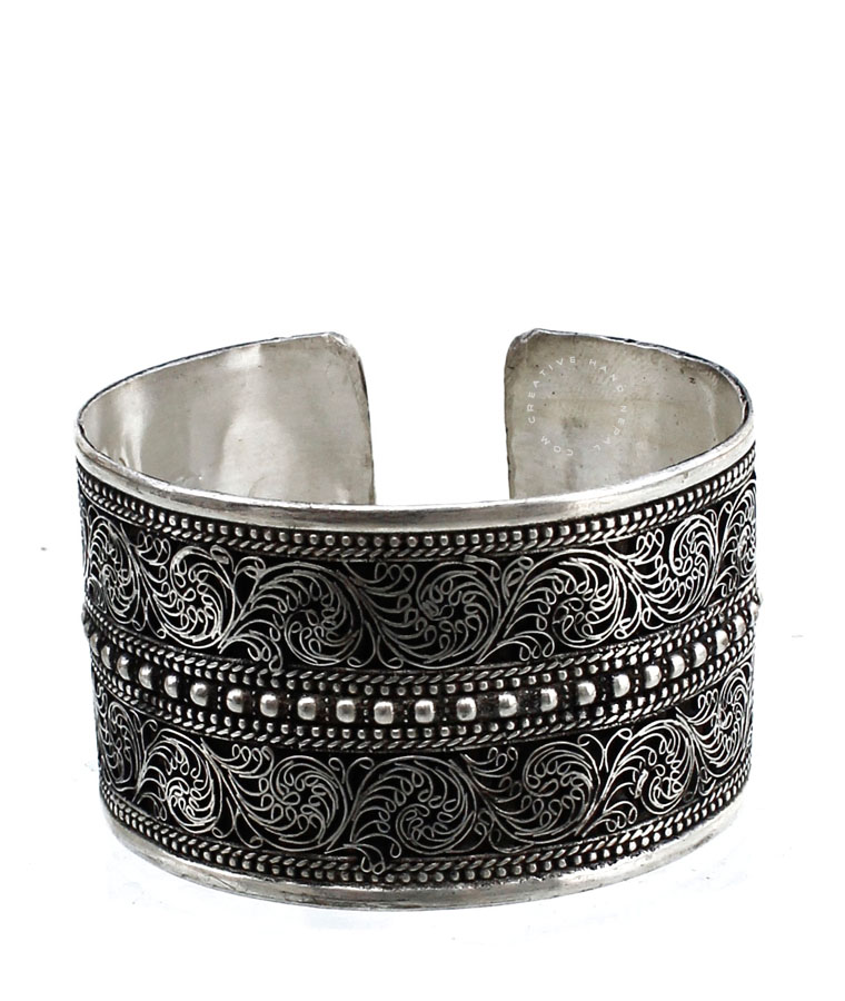 This Filgiri Work bracelet is made from White metal Approximately 4 cm wide and 18 cm long adjustable to fit men or women