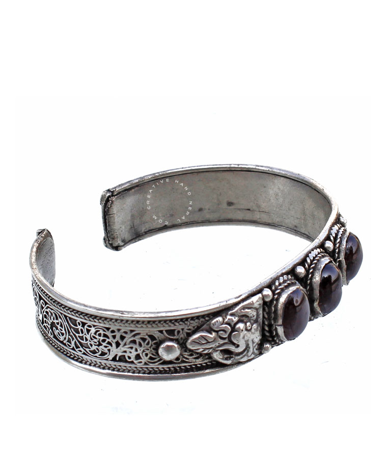 Tibetan Filigree Mix 3 stone bracelet.This bracelet is 1 CM wide X 18 cm Long. This is a adjustable bracelet - fits most of the wrist.