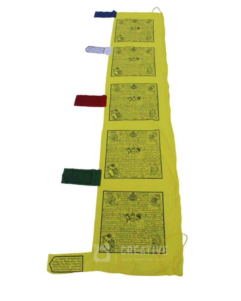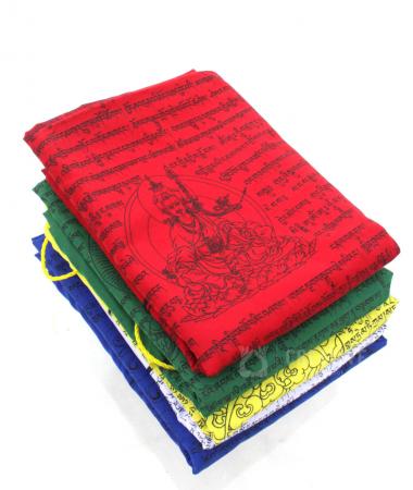 These fine quality single color prayer flags are made of 100% cotton .Traditionally, prayer flags are used to promote peace, compassion, strength, and wisdom. The flags do not carry prayers to gods, which is a common misconception; rather, the Tibetans believe the prayers and mantras will be blown by the wind to spread the good will and compassion into all pervading space.Prayer flags are usually to hang indoor and out on roof top or top of mountains that the wind blows and releases prayers into the universe and to create warm environment. The flags should be hung vertically on a pole, attached to a tree, on the side of a house.