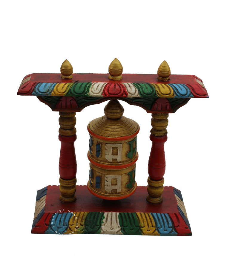 Hand Hand-Carved and Painted Wooden Prayer Wheels table top Tibetan prayer wheels.Colorful Prayer Wheel made out of wood. Simply place it on the corner of your desk and spin it in your idle moments. Approx 8 inch H X 7.5 inch L x 3.5 inch W