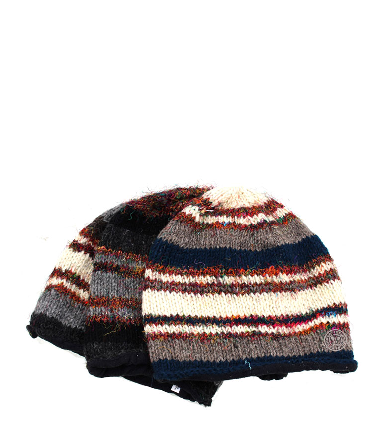 These Hand Knitted Wool & Recycle silk Hats are truly deluxe. . each hat is wool on the outside with a soft fleece lining on the inside. They are all hand knitted  by the Kathmandu women in Their Houses.  One size fits all in this wool stretchy knit .
