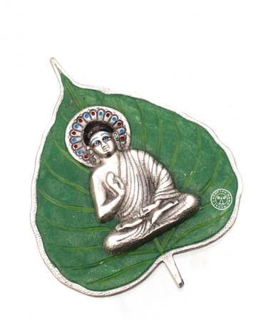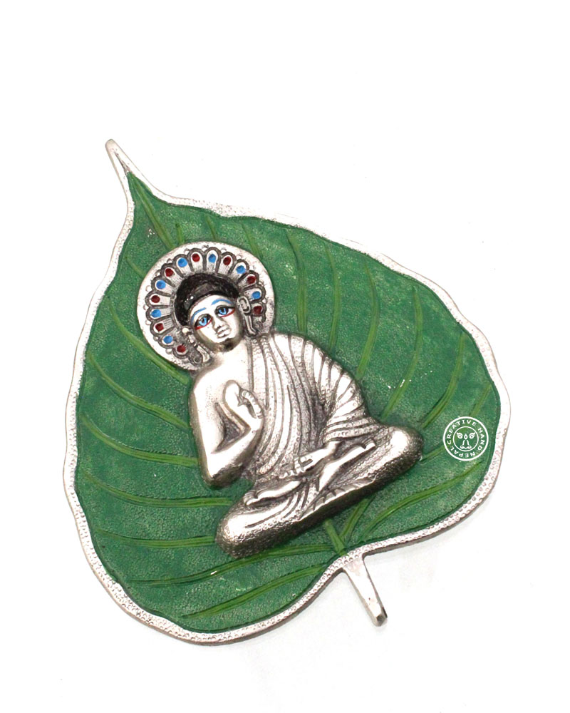 Spiritual Wall Hanging with Raised Design of Sitting Lord Buddha on Pipul Leaf - Siddh?rtha Gautama was a spiritual teacher who founded Buddhism. In most Buddhist traditions, he is regarded as the Supreme Buddha of our age, "Buddha" meaning "awakened one" or "the enlightened one." - Handcrafted: Skillfully created by artisans. Slight variation may occur in color, size and design enhancing individual artistic character of each piece. Though our photography tends to very accurate, color discrepancies may occur due to the setting of your computer. Measures 7" H X 6"W.