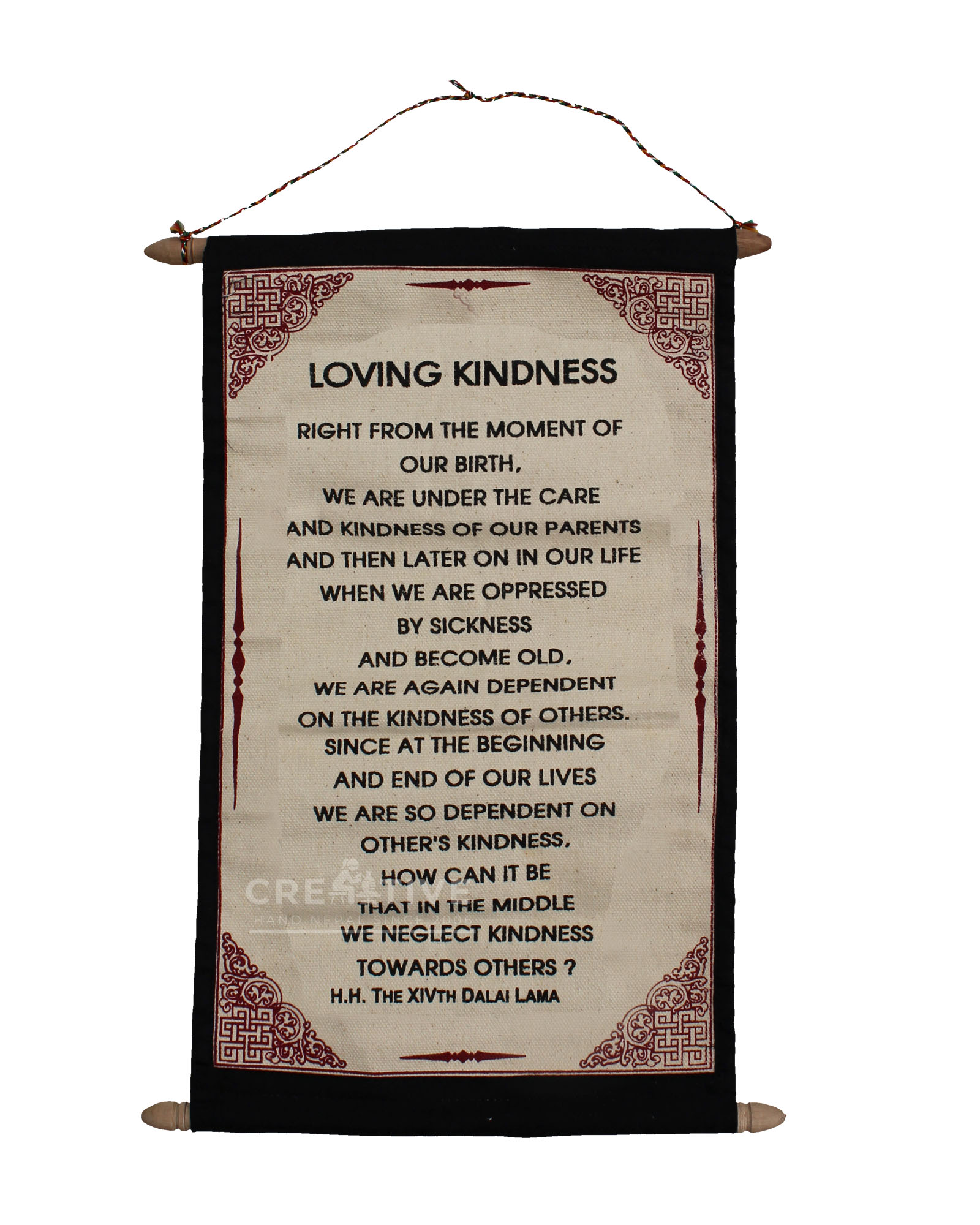 Handmade from cotton fabric in Nepal, this wall hanging is a beautiful reminder to practice compassion and kindness every day. Perfect for homes, meditation spaces, yoga studios, or as a meaningful gift.