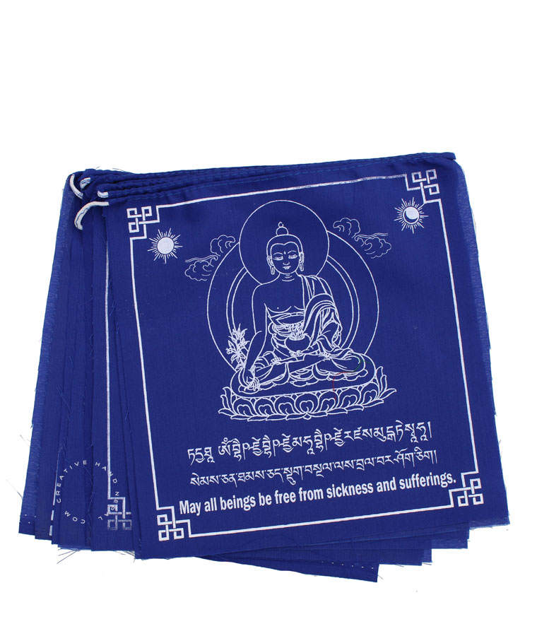 This listing is for a roll of prayer flags and there are 10 flags in the roll and each flag measures 9 inches by 9 inches. Each of the flag has Medicine Buddha and Medicine Buddha Mantra.