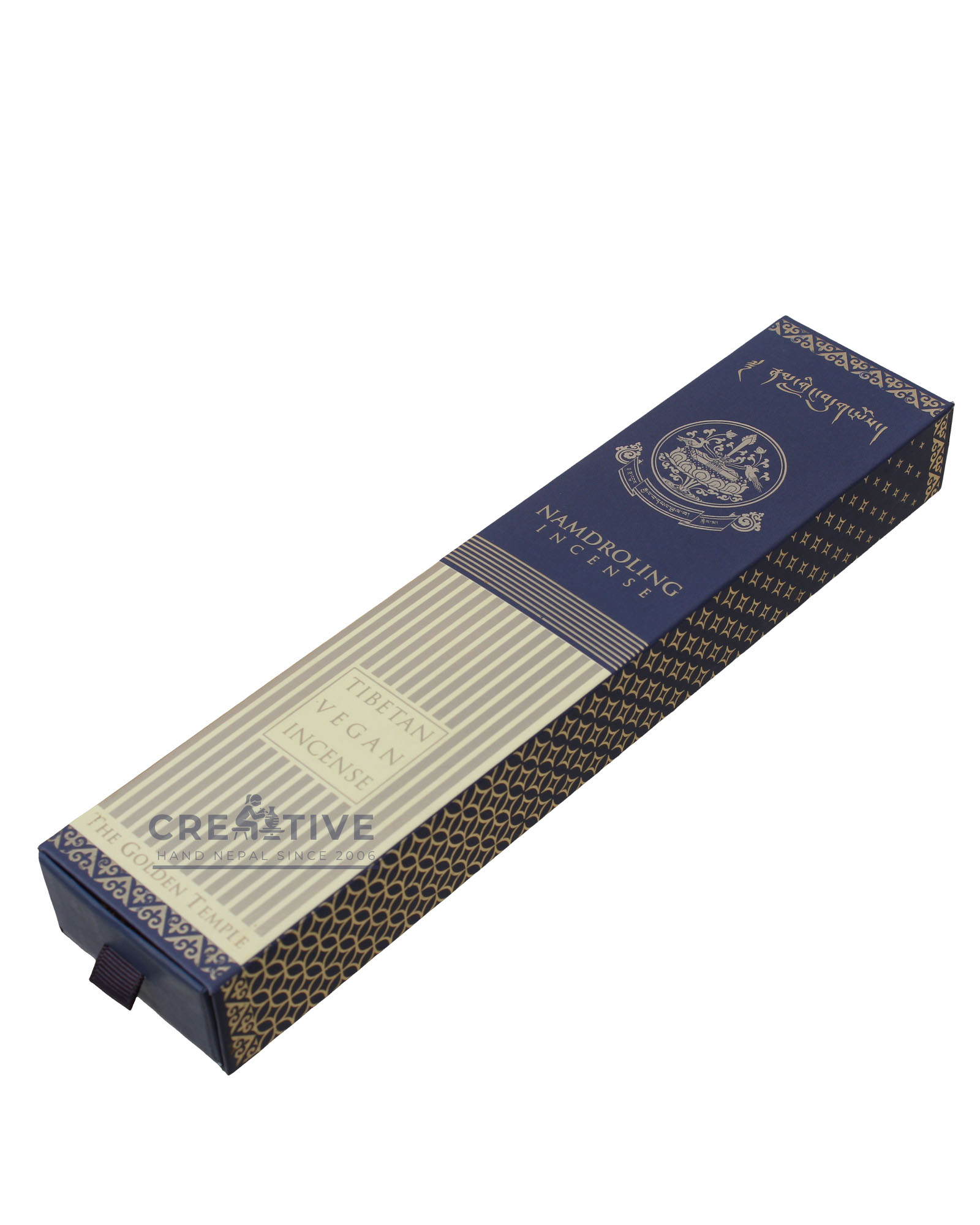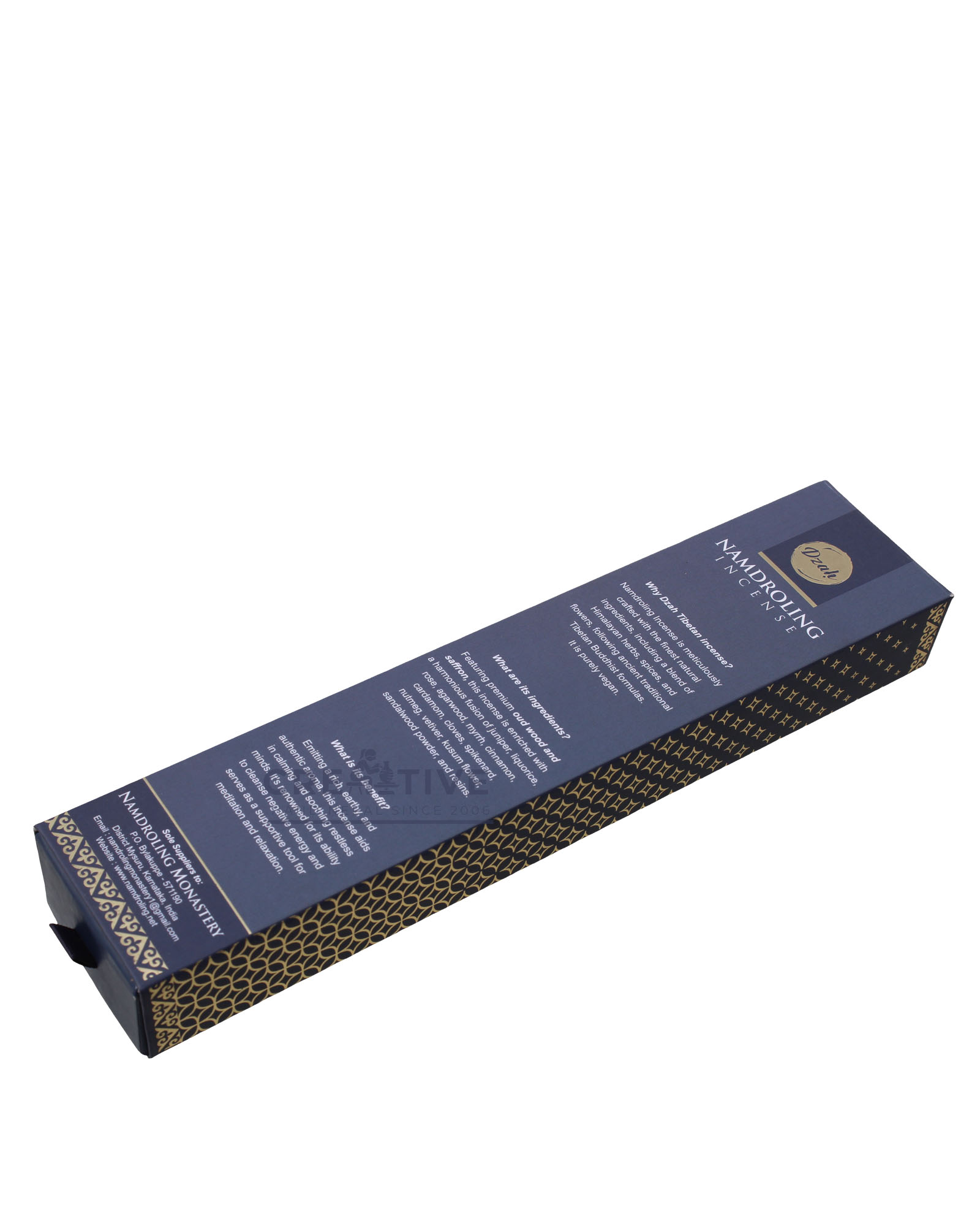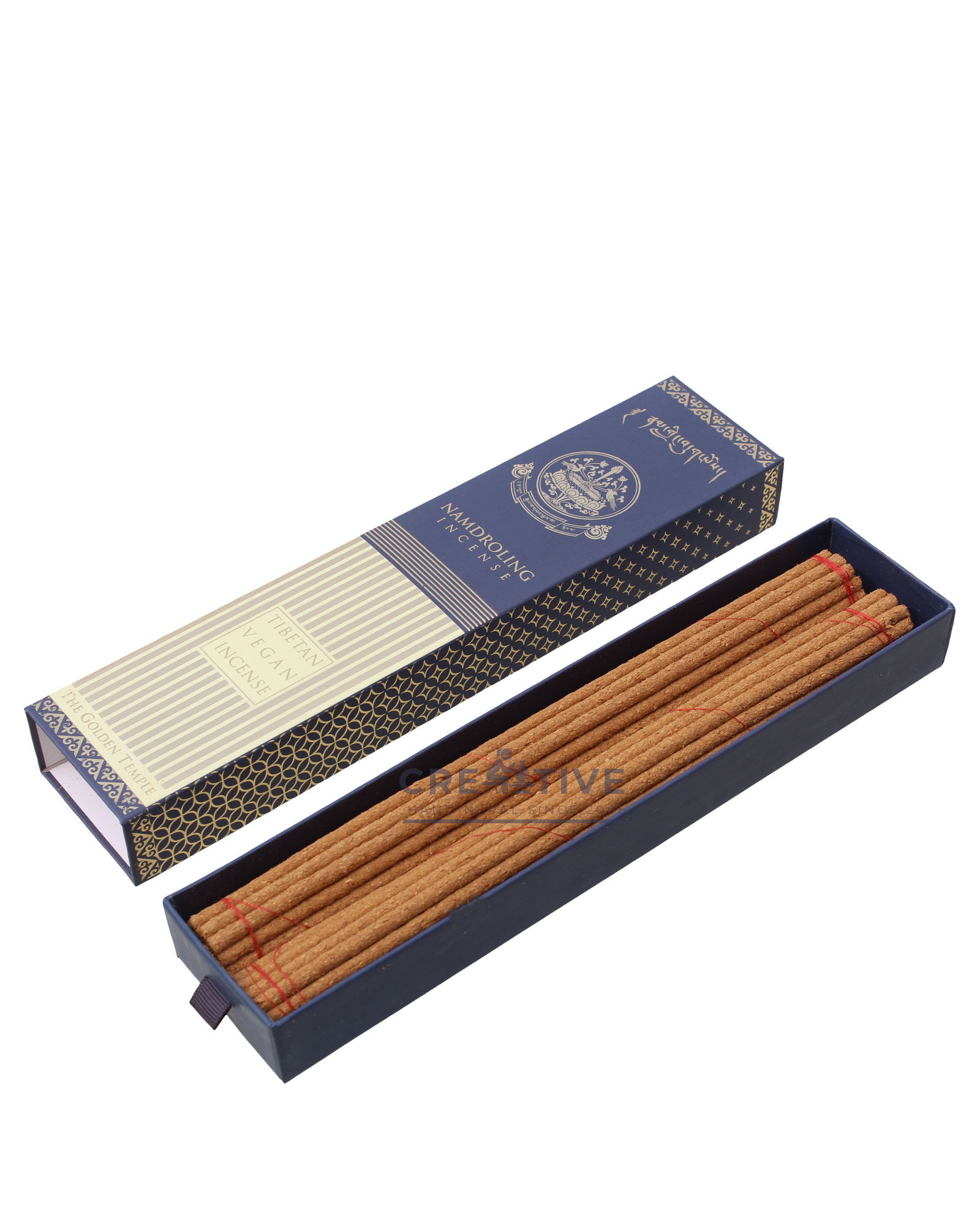 The unique qualities of this new Namdroling Incense stand out for their purity and natural composition. It contains no animal-derived substances or synthetic perfumes. Its primary ingredients include the six precious substances, aloe wood, saffron, sandalwood, and rose petals. Additionally, it incorporates a selection of traditional medicinal and aromatic herbs, along with a blend of various woods and flowers. This incense is crafted with extensive expertise in blending high-quality ingredients and selecting exquisite fragrances, ensuring a superior product.