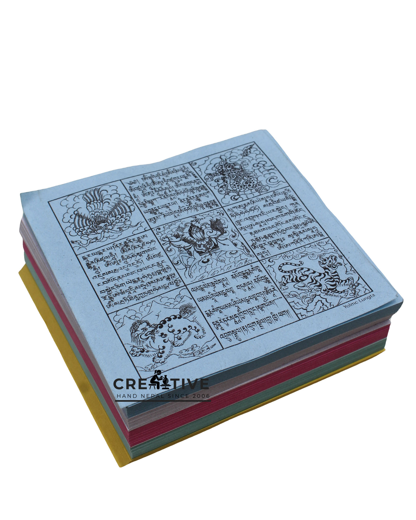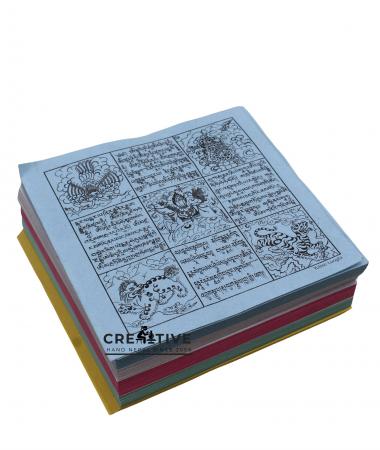 Share blessings with the world using Lung Ta Windhorse Prayer Papers, an ancient Tibetan ritual item used to spread compassion, peace, and positive energy. The word "Lung" means wind, and "Lung Ta" translates to Windhorse, symbolizing the upliftment of life force and fortune. Printed on very thin, lightweight paper, these colorful square papers are traditionally thrown into the air from high places after prayers, allowing the wind to carry the sacred mantras to all directions. As they fall and return to the earth, they bless the ground and all beings who come into contact with them.
