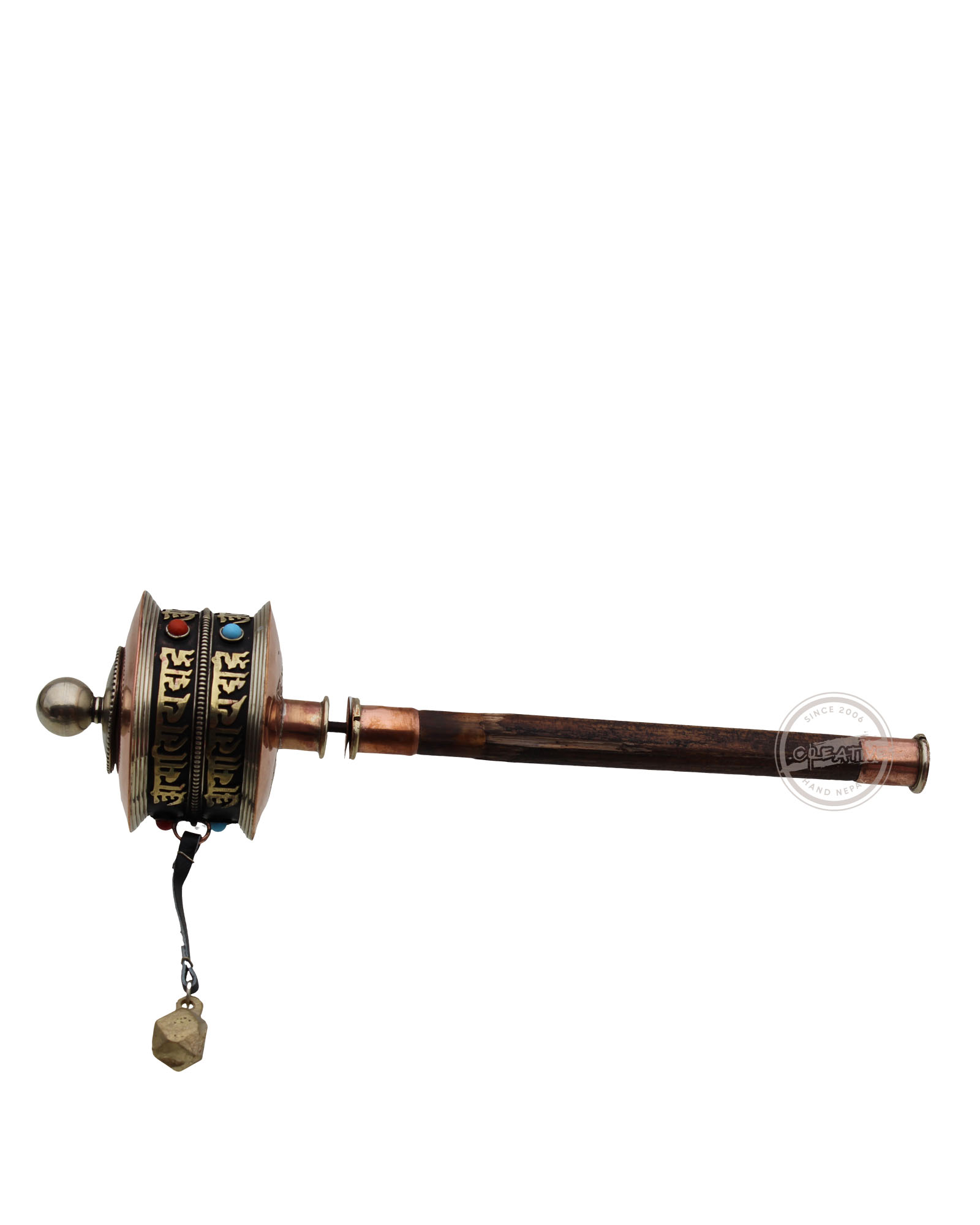 2. Medium - Prayer wheel measures approximately 10 inches long and is 3 inches in diameter.