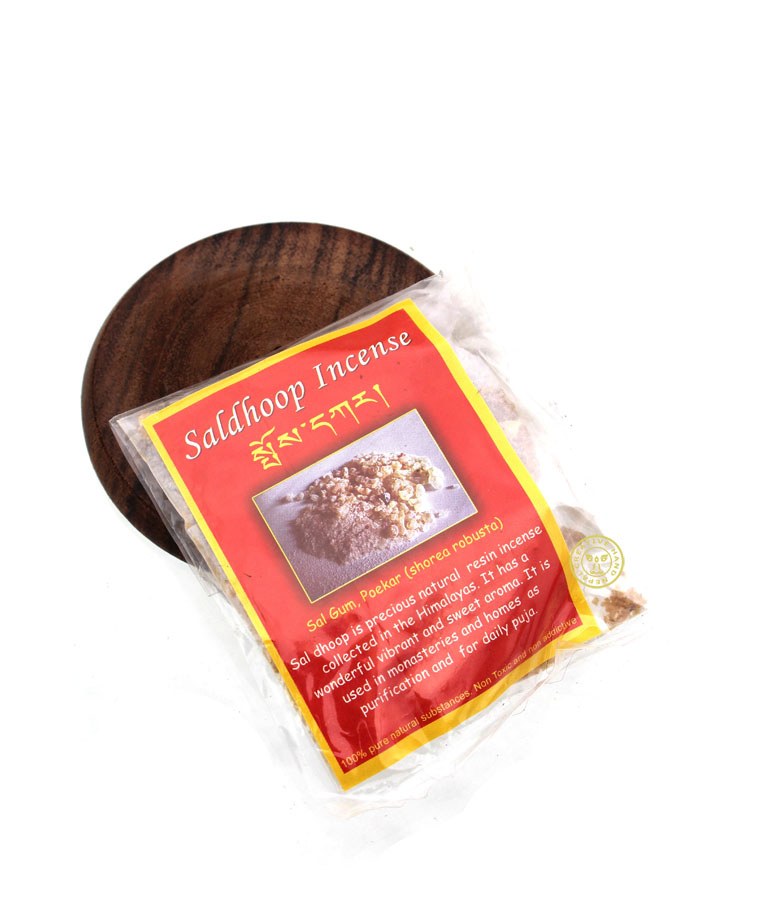 Sal dhoop incense is precious natural resin incense collected in the Himalayas. It has a wonderful vibrant and sweet aroma. It is used in monasteries and homes as purification and for daily puja. Approx 3 x 3 inch