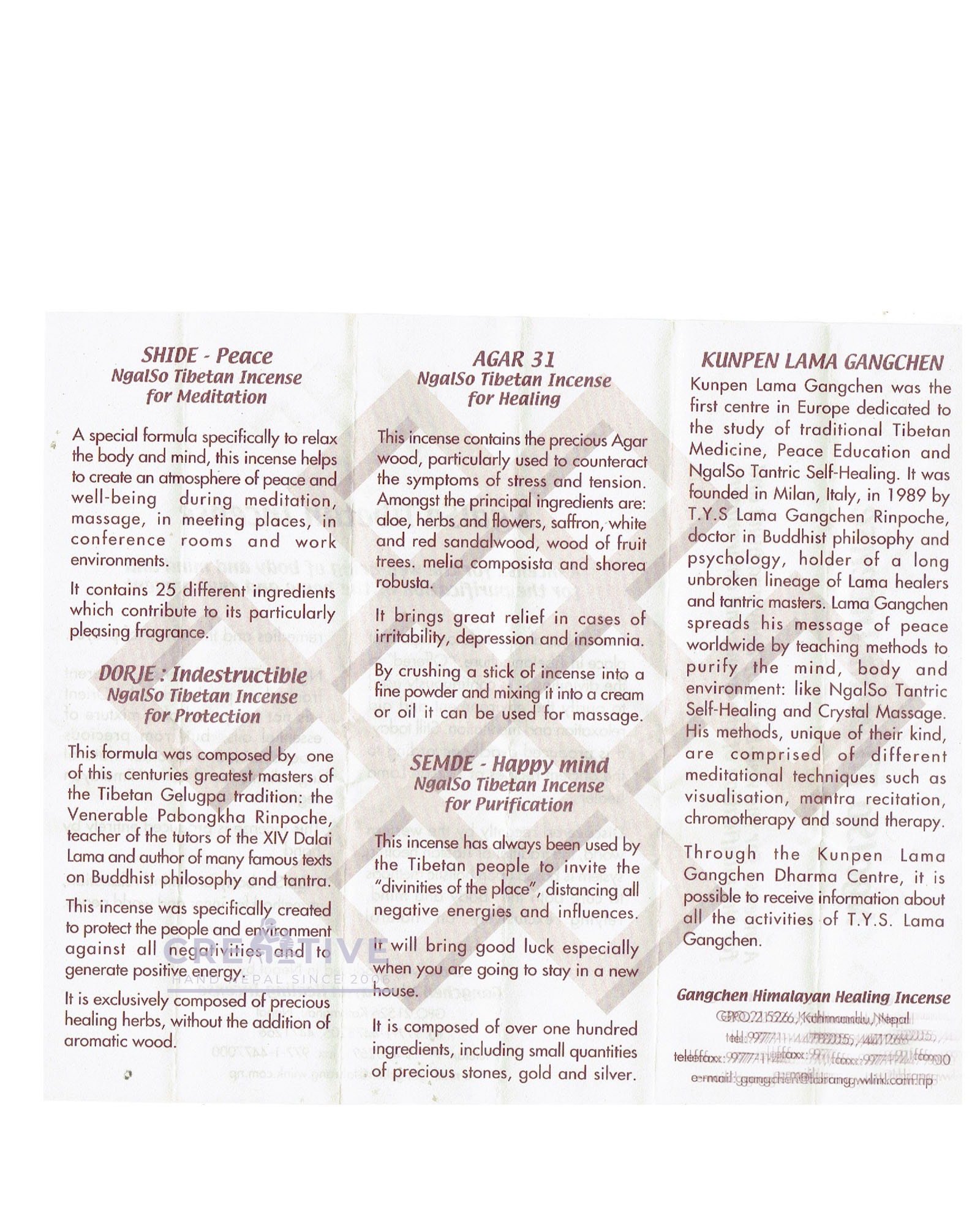 Semde NgalSo Tibetan Incense for Purification (This incense has always been used by the Tibetan people to invite the "divinities of the place", distancing all negative energies and influences. )