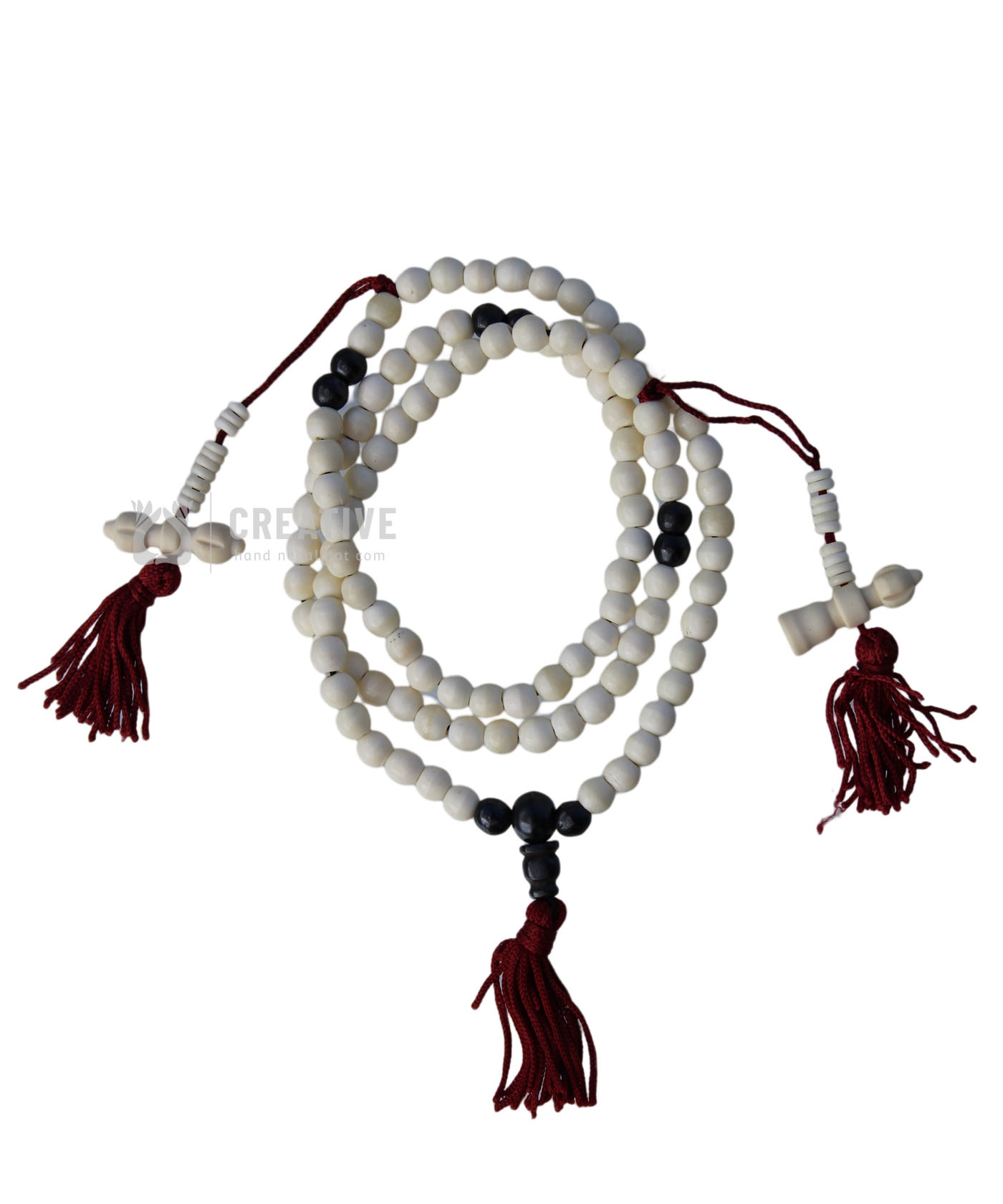 Bone is a traditional material used in malas in both Nepal and Tibet. Bone represents the earth and our connection to it. Bone is also said to signify strength and to amplify prana (life force energy.) Approximate Circumference: : 24"inch, Bead Size: 6 mm TO 7 mm ,108 beads  with stretchy elastic cord