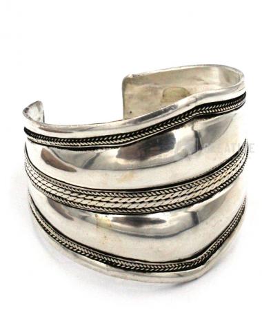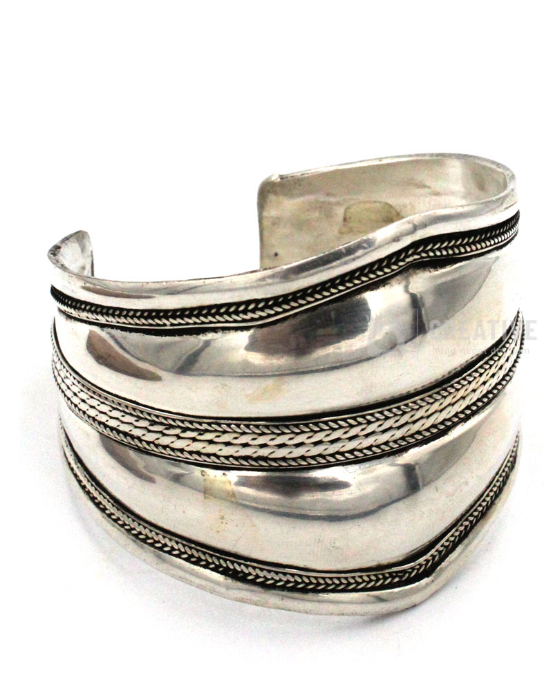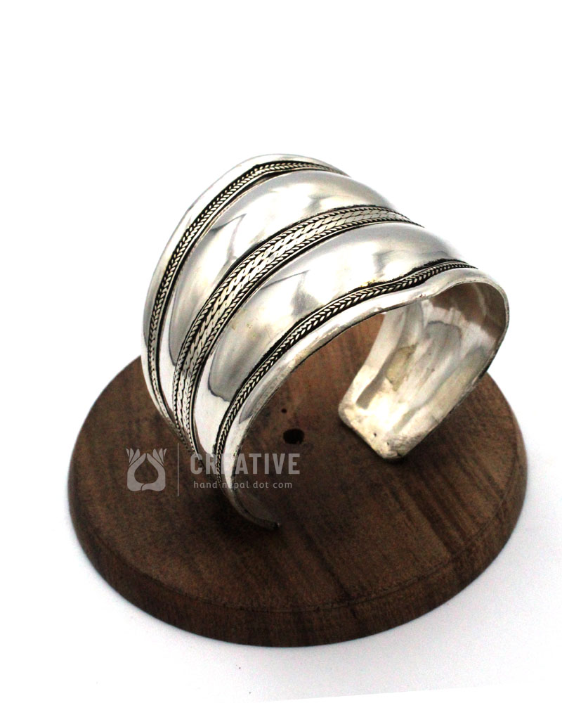 This is a Beautiful Handcrafted White Metal Bangle .This  Bangle design is handcrafted in Nepal using traditional tools and techniques. Handmade organic defects in finish add to the artistic character of the piece. Approx 5 cm Height & 18 cm around.This bracelet is adjustable. It is adjustable for different sized wrists.