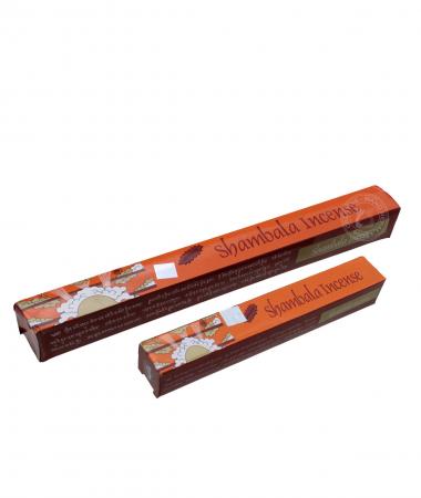 Shambala traditional Tibetan incense is purely hand prepared from highly flavored medicinal herbs and other precious substances. It consists of 32 different ingredients and the major ingredients are Saffron, Nagi, Nutmeg, Laung, Cardamom, Banslochan, Kapoor, Kusum, Flower, Barra, Jaipatri, Gaulochan, White and Red Sandal wood, Sal Dhoop, Gugal and other precious Gems. The combination of these genuine scented substances makes the Shambhala incense richer and superior quality then other incense. Our Incense is totally absent of choking and camphor smell and is also non-toxic and non-habit forming. Generally the Tibetan Incense is used for Puja offering and purification, but it is also used as air freshener which keeps one's surrounding flavored with good scent.