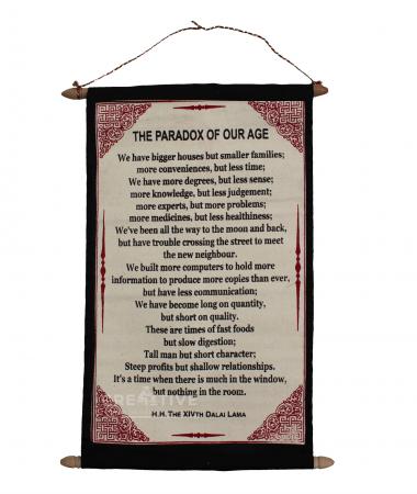 This Dalai Lama Quote Wall Hanging features the profound reflection known as “The Paradox of Our Age” from His Holiness the 14th Dalai Lama: