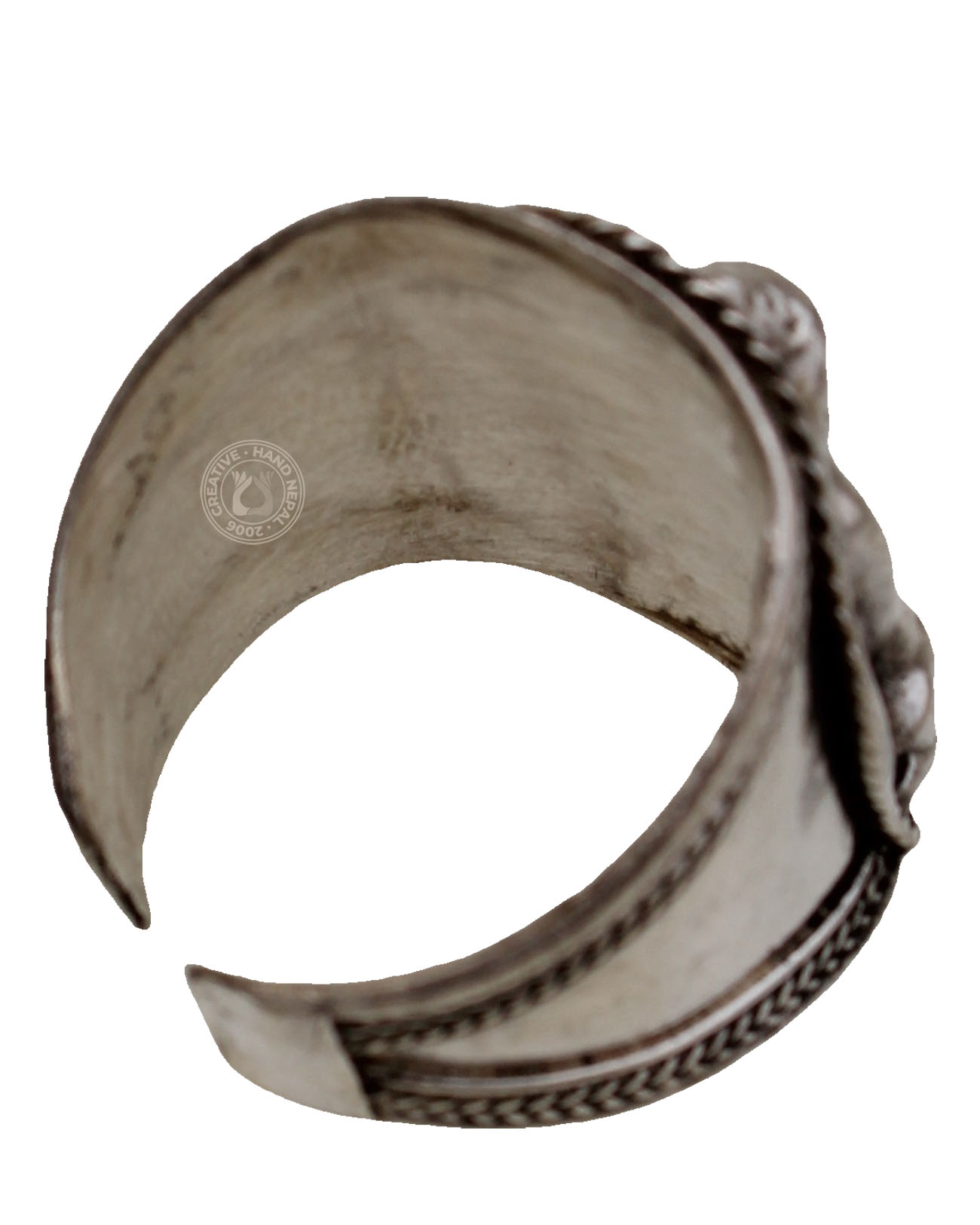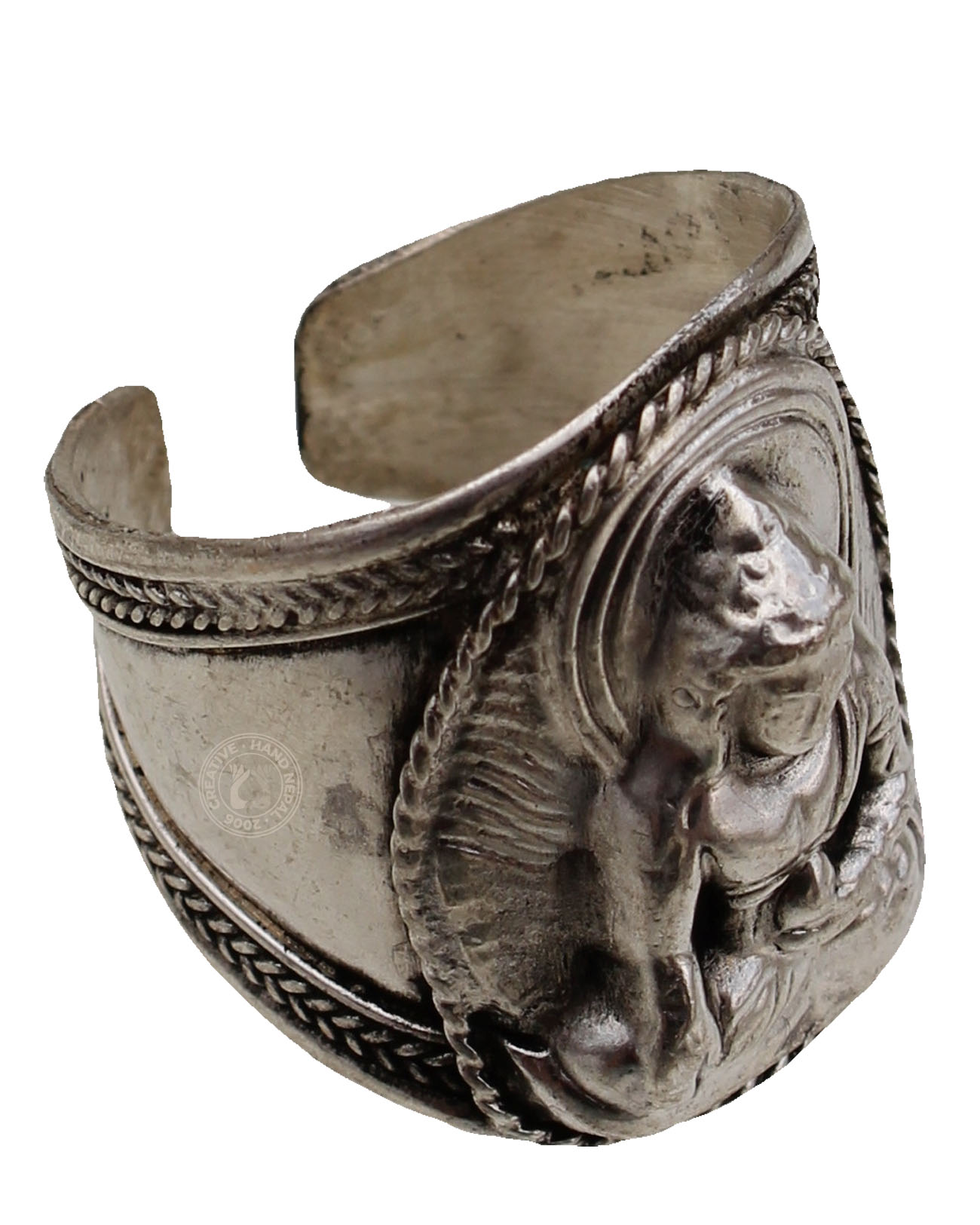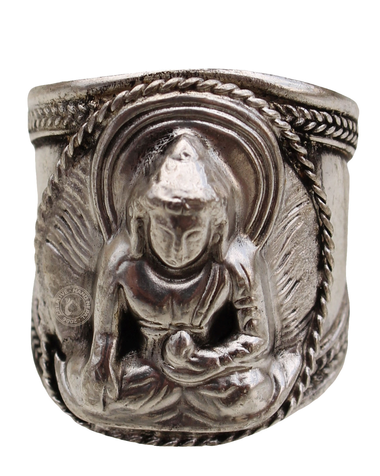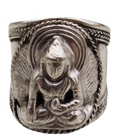 Elevate your style with our adjustable Buddha ring in white metal. Made from high-quality materials, this ring features a detailed Buddha design that is both elegant and meaningful. The adjustable band ensures a comfortable fit for all finger sizes., The handcrafted touch of artisan skill will create variations in color size and design. Color differences may occur between the actual product and your computer screen. If buying two of the same items, slight differences will occur from piece to piece. Adjustable size