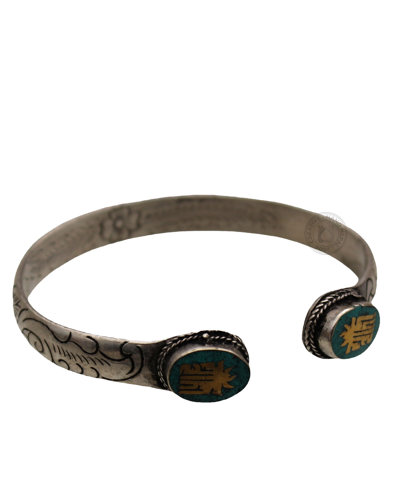 This Double stone bracelet is made from White Metal & Stone .They are attractive, adjustable and functional.This enchanting design is handcrafted in Nepal using traditional tools and techniques.Handmade organic defects in finish add to the artistic character of the piece. Please note that each bracelet is unique and stones cannot be specified. Approx 21 cm around.