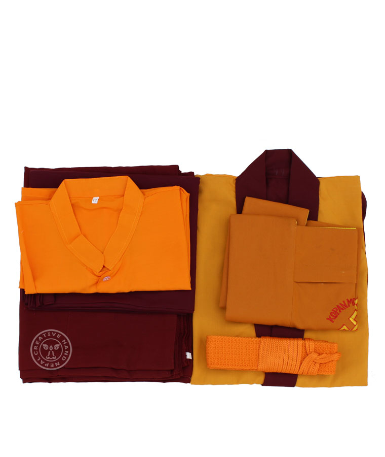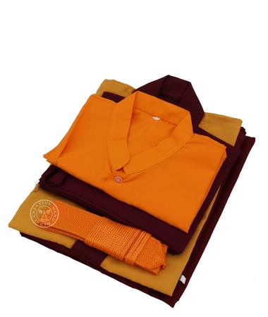 Tibetan Buddhist Monks Robes Tibetan =This is a complete set of Buddhist Lama or Monk. These set of robes contains five pieces of garments including: Nulen (Shirt), Tongka (Jacket), Sen (Shawl), Shantap (skirt), Carol (Belt)