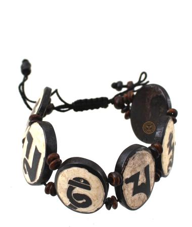 This Hand carved  Buffalo Bone Bracelet wrist mala with Tibetan Om. It has Tibetan style knot with adjustable string that will fit any wrist sizes.  Our collection of hand carved Bone Bracelet is unique in design to meet the fashion needs & price is very competitive Each piece is individually hand-carved, with no two peices ever exactly the same. Adjustable length for easy sizing.