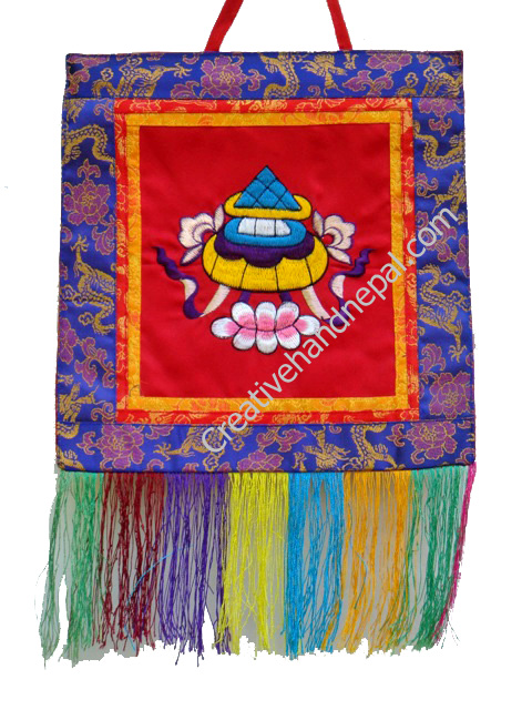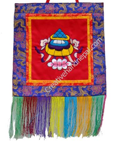 The symbolic meaning of the Tibetan victory banner is a sign of victory over all disagreements, disharmonies or hindrances. It also symbolizes the victory of the Buddhist teachings, the victory of knowledge over ignorance as well as the attainment of happiness. The victory banner is a part of the famous Tibetan Eight Auspicious Symbols..They are handmade each one will differ slightly from the one shown . Assort Color Only, Approx 10.5 x 16 inch