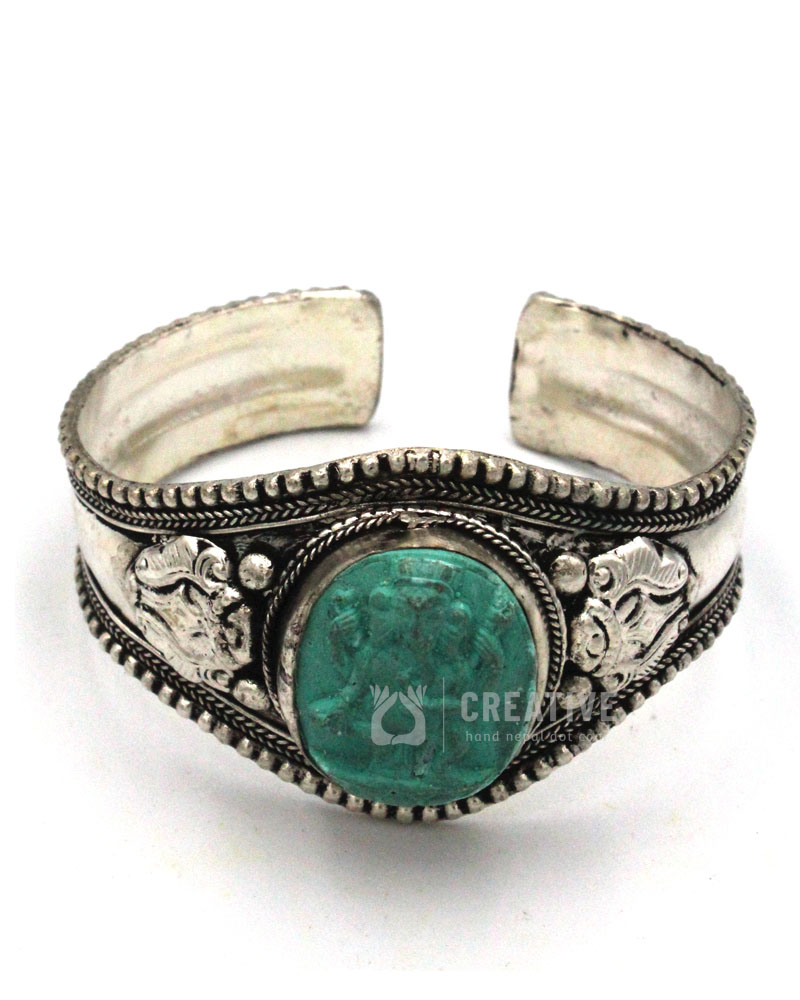 There is Turquoise Deity on the front of the  Bracelet.this item is hand-made, the actual product may vary slightly from the picture. mix desing only Approximately 3.5 cm wide x  18 cm long. Adjustable Size