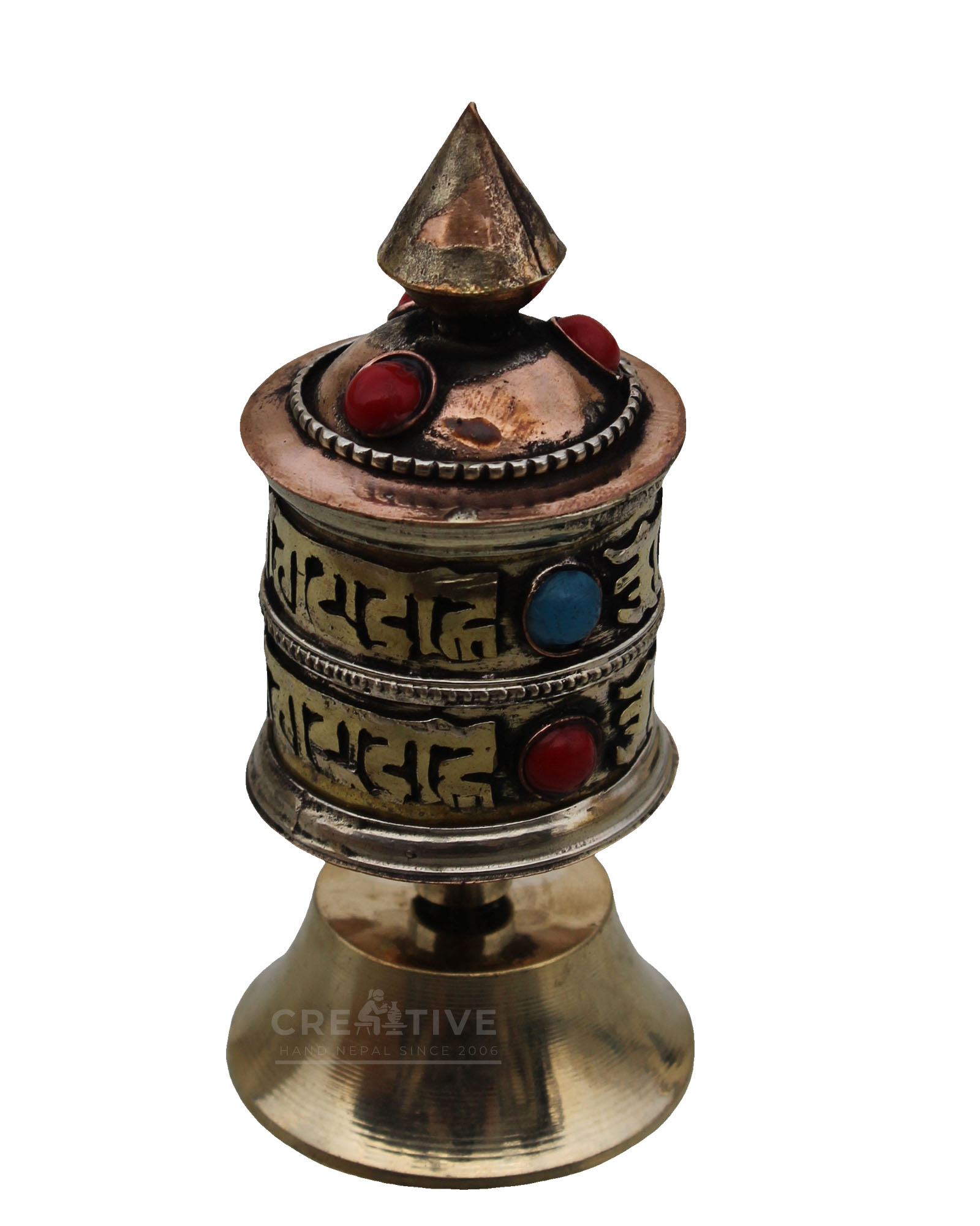 This handcrafted Tibetan Tabletop Prayer Wheel is a premium spiritual tool designed for meditation, relaxation, and home decor. Engraved with the sacred "Om Mani Padme Hum" mantra, this prayer wheel enhances positive energy, mindfulness, and inner peace.